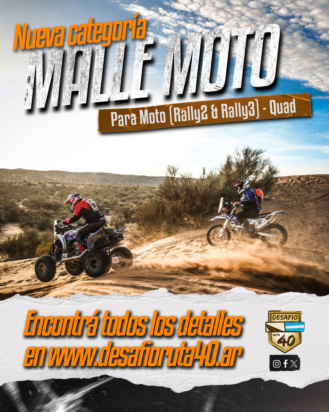 El Desafío Ruta 40 incorporará por primera vez la categoría Malle Moto, una de las modalidades más exigentes y auténticas del rally raid. Este formato, reconocido por su espíritu de aventura y autosuficiencia, representa un gran paso para la competencia y una oportunidad única para los pilotos que buscan vivir el rally en